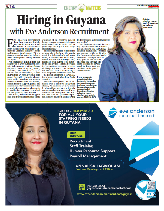 Hiring in Guyana with Eve Anderson Recruitment